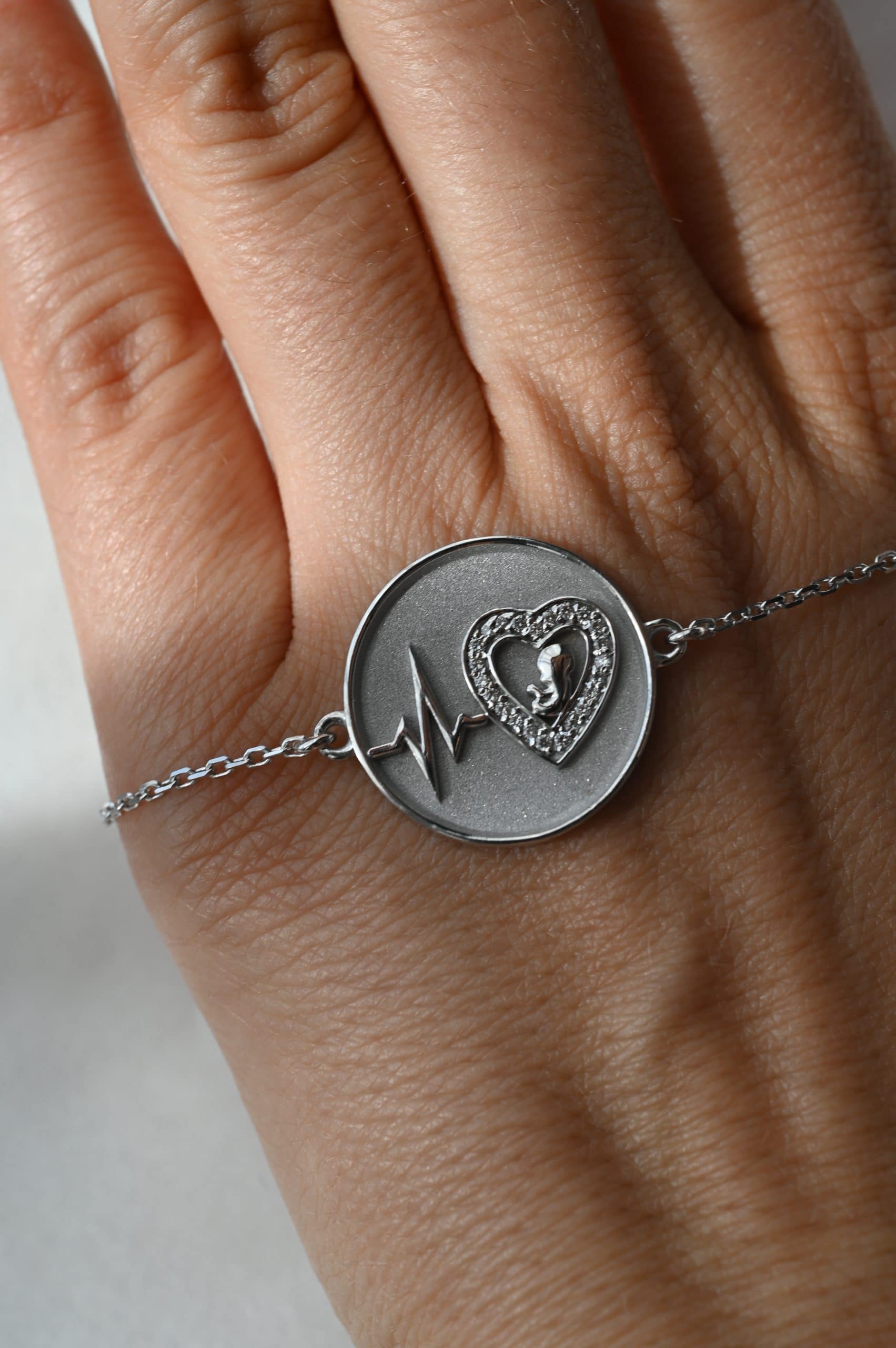 Гривна с кръгла плочка изработена в 18к злато. Диаманти 23бр VVS/E. Гърбът на плочката е полиран с надпис.